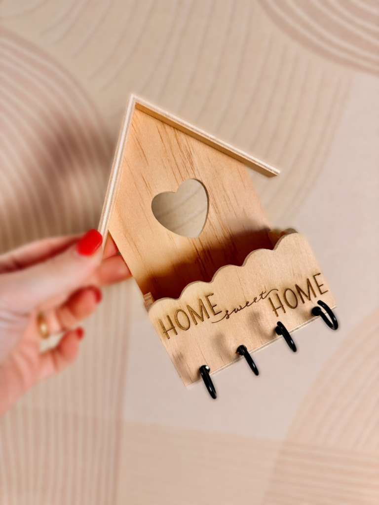 Crafted from natural wood, this wall-mounted key holder can be personalized, making it both functional and meaningful. Ideal for entryways, apartments, or as a thoughtful housewarming gift.